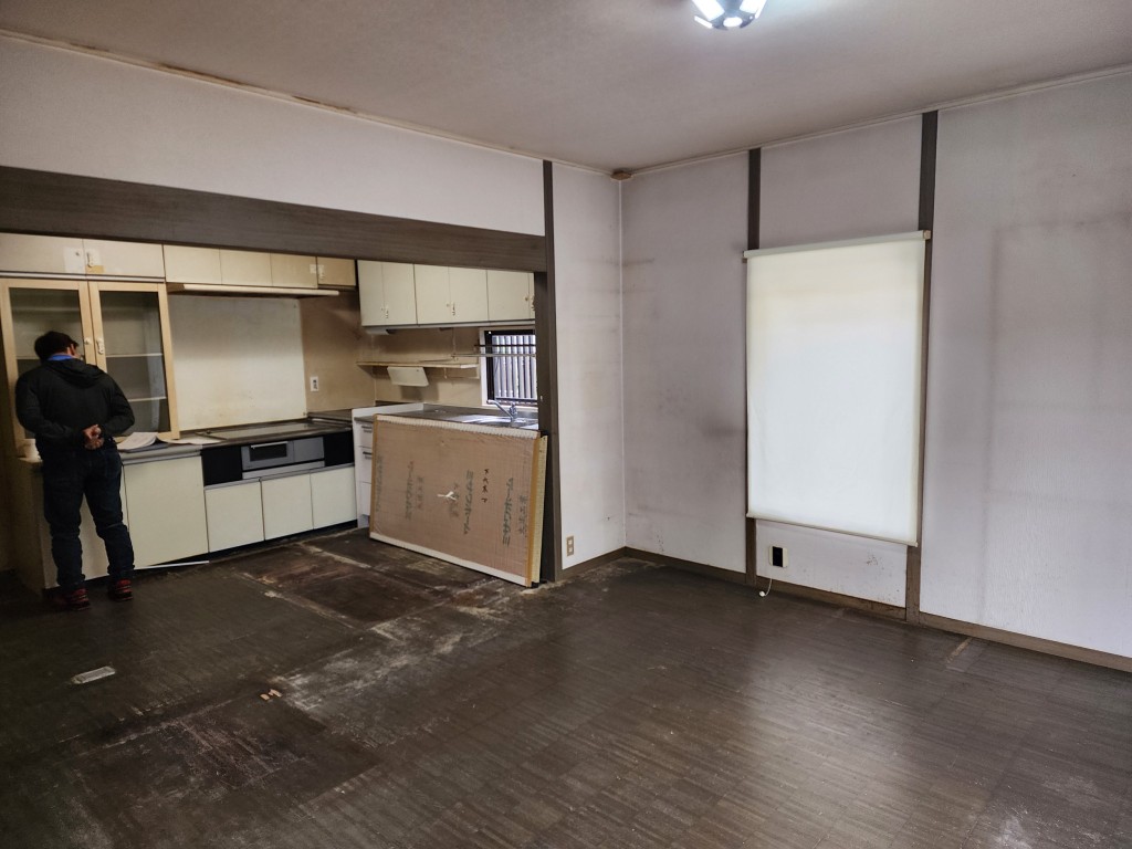 もともと居間だった写真手前のスペースにキッチンを移設します。