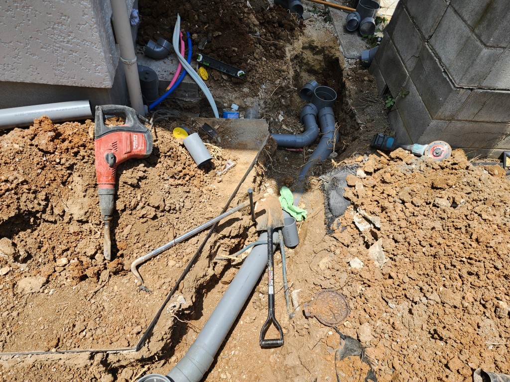 屋内に続く配管だけでなく、大元からの給水・排水管も引替えしています。
